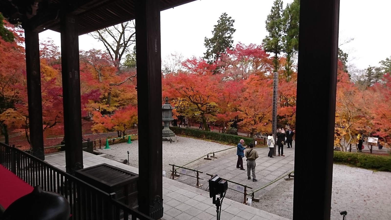 永観堂から歩くこと15分、金戒光明寺へ。幕末には京都守護職の本陣にもなった寺院です。庭園が綺麗でした。池に映る紅葉もなんとも言えなかったですよ。